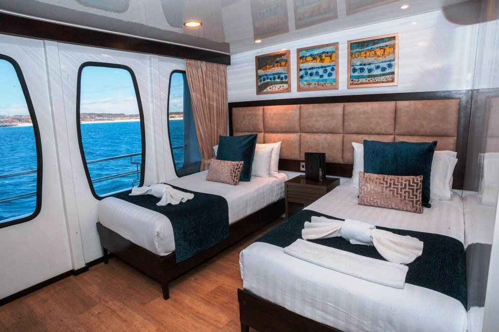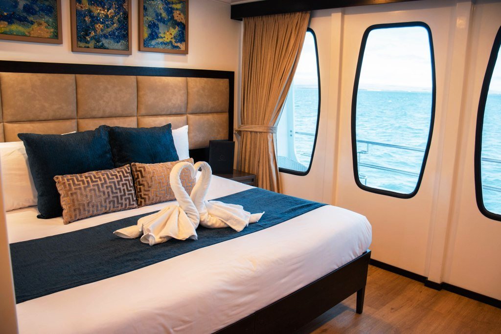 Sube a bordo del Alya, un lujoso catamarán que combina a la perfección elegancia y confort. Con espacio para tan solo 16 pasajeros, disfrutarás de una experiencia de crucero íntima y personalizada. Las 9 elegantes cabinas cuentan con baño privado, aire acondicionado y grandes ventanales con impresionantes vistas al mar. Ocho cabinas incluso disponen de balcón privado, para que puedas relajarte y disfrutar de la belleza natural de Galápagos.