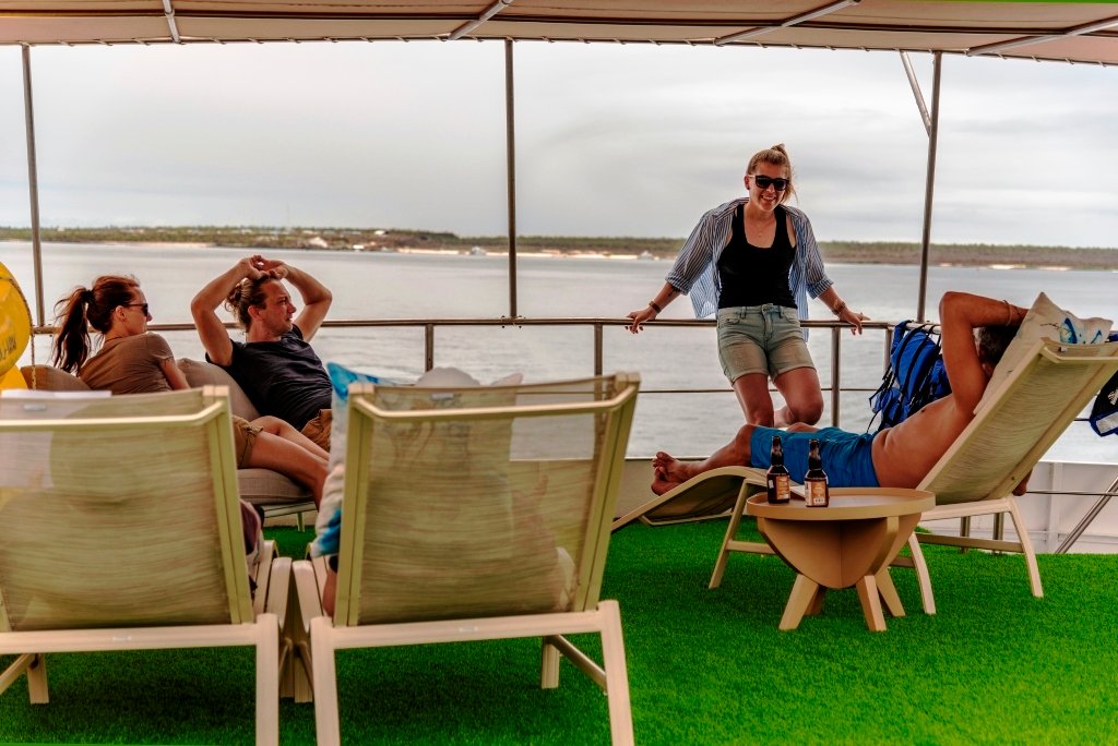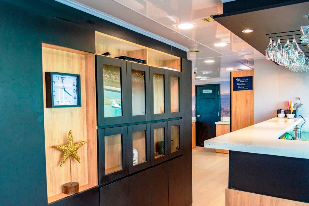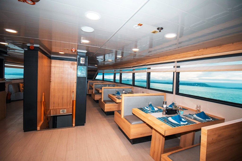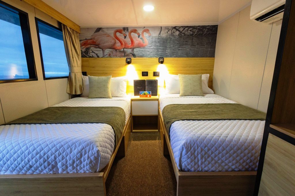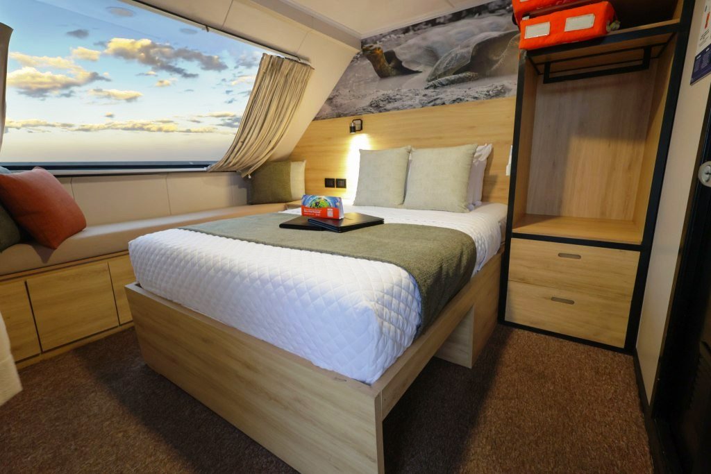 Bonita es un elegante yate motorizado que ofrece alojamiento para un máximo de 16 huéspedes, diseñado para una experiencia de crucero íntima y cómoda a través de las Islas Galápagos. El barco se distribuye en 3 cubiertas y cuenta con 9 cabinas: 4 en la cubierta superior, 2 en la cubierta principal y 3 en la cubierta inferior. Las cabinas están equipadas con aire acondicionado, baño privado, amplio espacio de almacenamiento, luces de lectura y puertos de carga. Algunas cabinas también ofrecen vistas al mar a través de grandes ventanas o portillos.