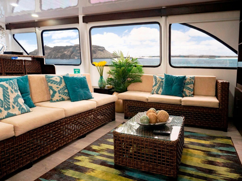 Las áreas sociales a bordo están diseñadas para la relajación y la interacción social. Hay una sala de estar con biblioteca y facilidades de entretenimiento, un comedor para comidas en grupo, un bar para bebidas refrescantes y una terraza solárium con tumbonas y vistas panorámicas. Además, hay una terraza exterior para una experiencia relajada al aire libre.