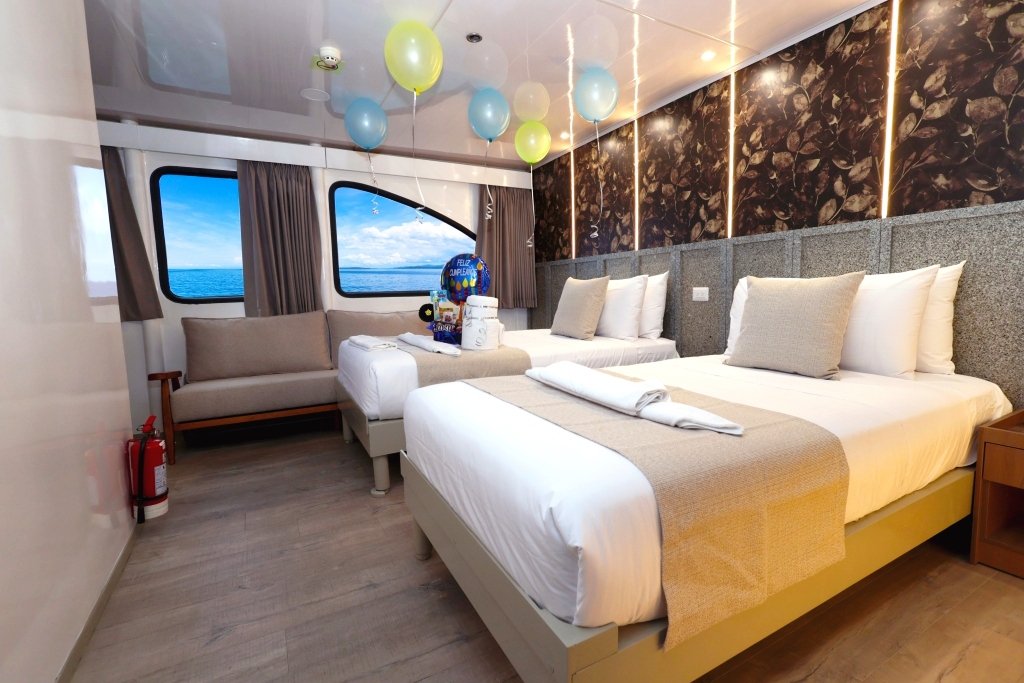 EcoGalaxy es un catamarán de primera clase moderno y ecológico que ofrece alojamiento para un máximo de 16 huéspedes. El barco cuenta con 8 cabinas espaciosas: 4 en la cubierta superior y 4 en la cubierta principal. Cada cabina está equipada con aire acondicionado, baño privado con agua caliente y fría, secador de pelo, caja fuerte y teléfono interno para comunicación a bordo. Las cabinas pueden configurarse con camas individuales o una cama matrimonial, y las cabinas de la cubierta superior pueden conectarse entre sí, lo que las hace ideales para familias o grupos.