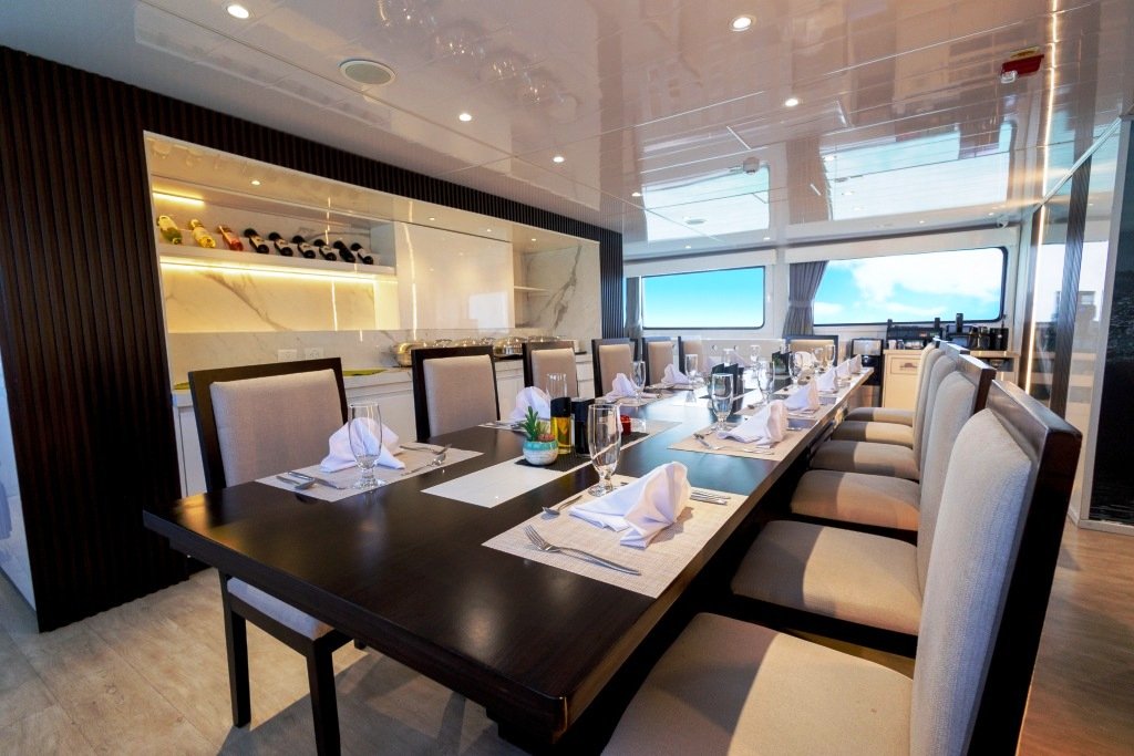 La tripulación consta de 10 personas, incluyendo 2 guías naturalistas bilingües, que brindan una atención personalizada y profesional durante todo el viaje.