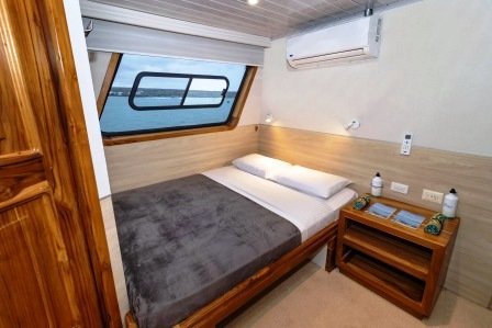 En la cubierta inferior encontrará 5 cabinas twin y 1 cabina con litera (Nº 2). En la cubierta superior, 2 cabinas con cama doble (Nº 7–8) y 2 cabinas twin (Nº 9–10). Todas cuentan con baño privado, caja de seguridad, aire acondicionado y secador de pelo. Además, hay wifi disponible en todo el barco.