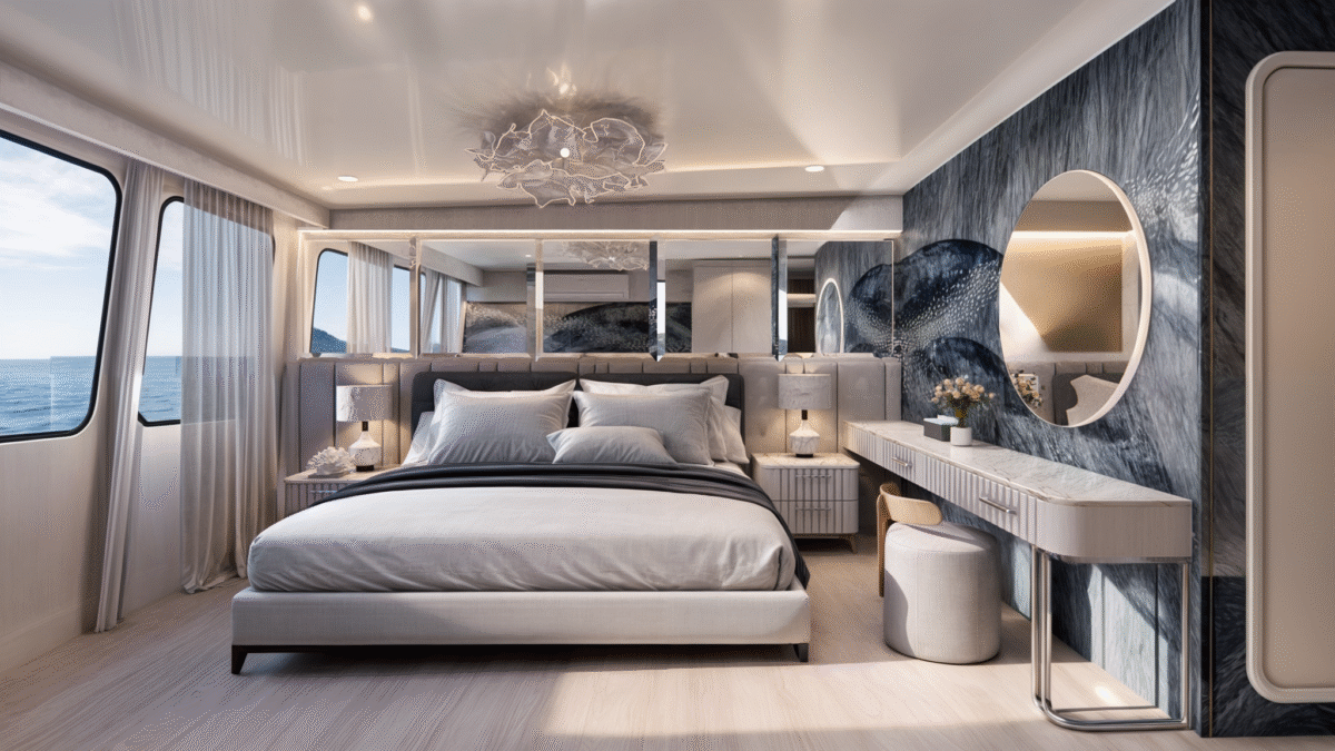 Este catamarán de lujo, que se inaugura en 2026, tiene capacidad para 16 personas en ocho camarotes Golden Stateroom. Todos disponen de aire acondicionado, ventanas panorámicas, zona de trabajo y un amplio cuarto de baño con todas las comodidades. Todos los camarotes tienen camas king-size, adaptables a camas gemelas. Hay 4 camarotes en la cubierta principal y 5 camarotes en la cubierta superior. También dispone de muchas zonas comunes: un salón panorámico, un bar al aire libre, jacuzzi, etc.