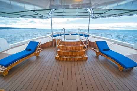 Este moderno catamarán se botó en septiembre de 2015 y se renovó a fondo en 2019. El barco cuenta con 9 camarotes espaciosos, todos con balcón privado y baño privado. En la cubierta principal hay dos suites y dos camarotes dobles. En la cubierta superior, encontrará otros cuatro camarotes dobles y uno individual. En la cubierta de sol, podrá tomar el sol mientras se relaja en el jacuzzi o en una de las tumbonas.
