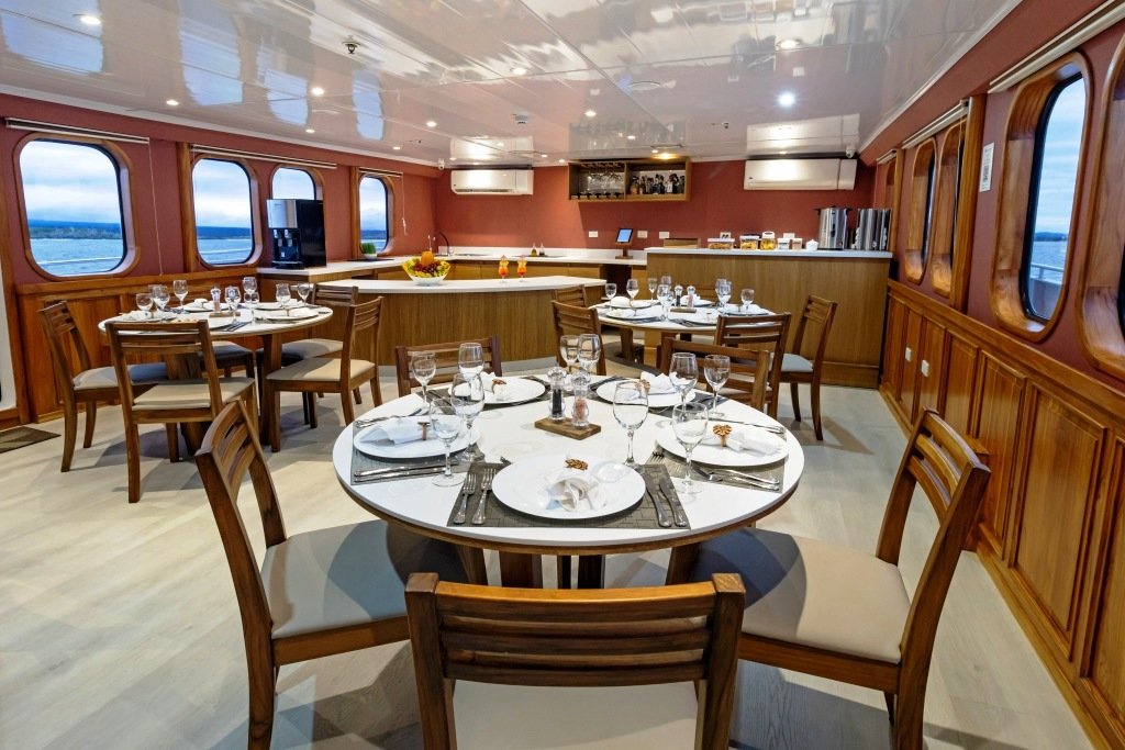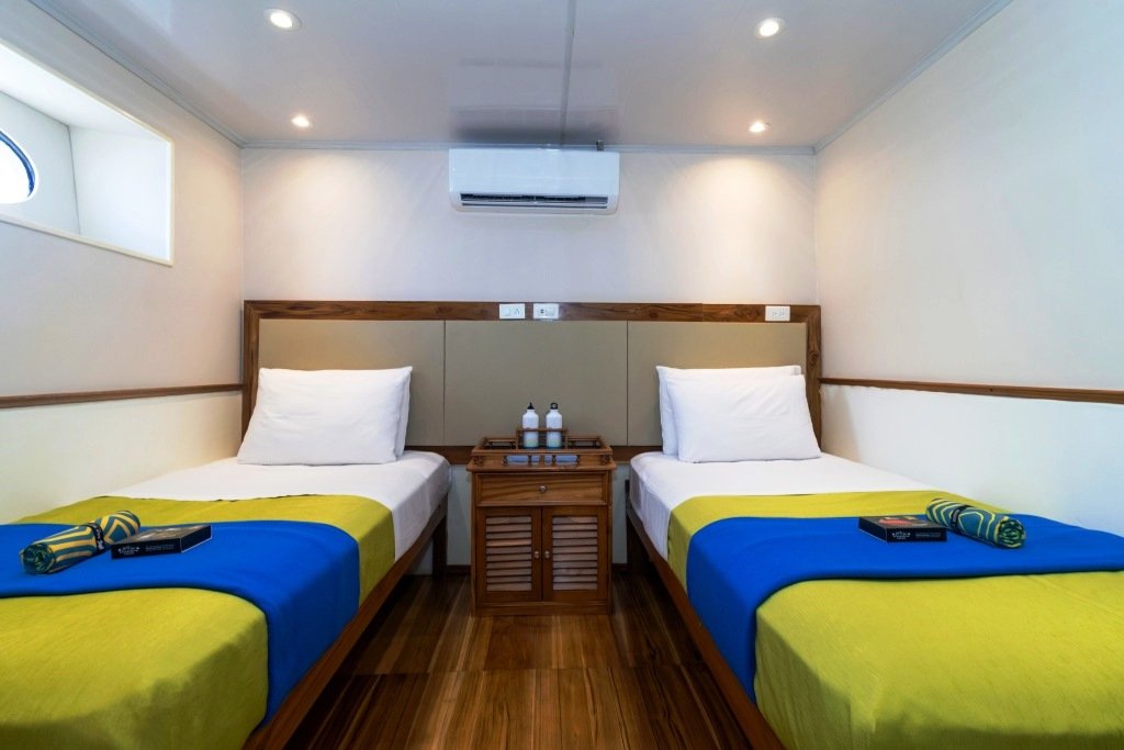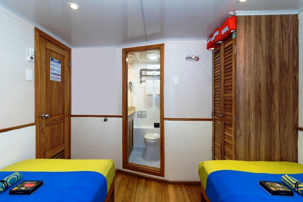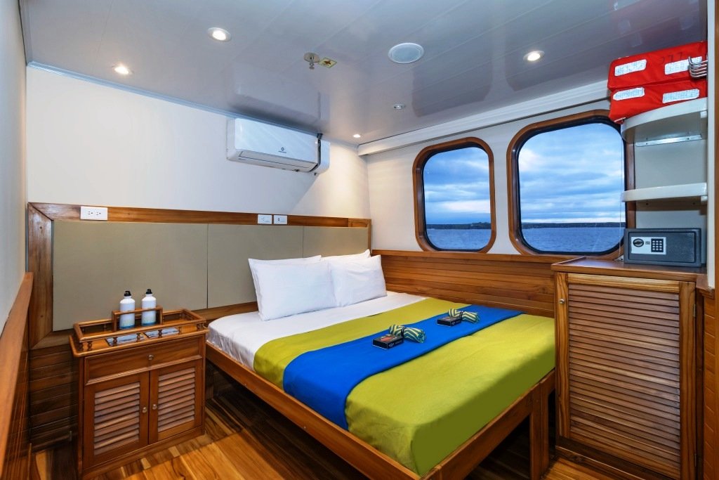 En la cubierta inferior hay 6 cabinas (Nº 1–6), todas con 2 camas individuales bajas. En la cubierta superior hay 4 cabinas (Nº 7–10), todas con 2 camas individuales bajas que se pueden unir. Todas las cabinas cuentan con baño privado, caja de seguridad, aire acondicionado y secador de pelo. Hay wifi en todo el barco. La nave dispone de un hermoso bar, un comedor, un solárium y un salón confortable.