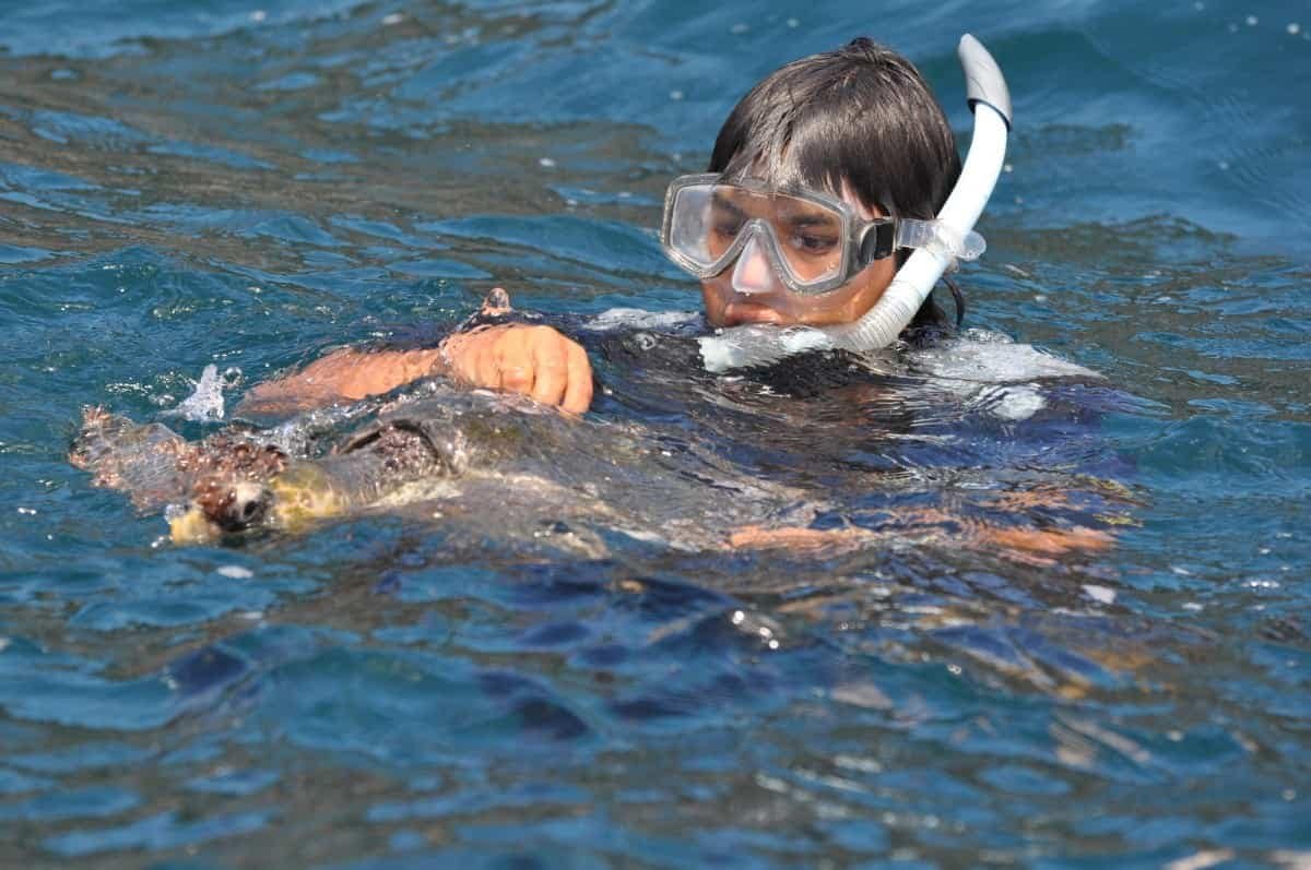 Aquí también puede bucear maravillosamente o salir con el kayak de mar. Hay una cueva de lava donde se pueden ver iguanas marinas buceando en busca de algas. Debido a que esta zona es tan rica en algas, también encontrará muchas ballenas y delfines aquí.