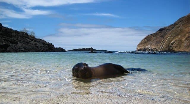 En el muelle ya te reciben los fuertes gritos de los leones marinos. Cerca de la ciudad encontrará cangrejos sally lightfoot, iguanas marinas, fragatas y otros animales típicos de Galápagos.